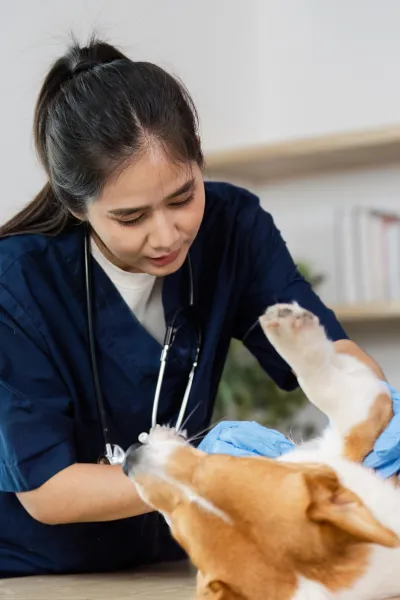 Wellness exams are not just routine checkups. They are a full physical evaluation of your pet’s eyes, ears, mouth, heart, lungs, and joints. They will also check your pet’s weight, body condition, and behavior. Certain vaccinations, bloodwork, and parasite control are also determined during your dog’s wellness exam based on your pet’s age, breed, and lifestyle. These exams are also used to build a health history on your dog/cat to help us identify changes health status changes. They also provide you the opportunity to ask us about what pet food is best for your dog, what kind of exercise is best, and address behavior issues.